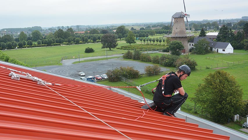 Der Benutzer wird durch ein Verbindungsmittel mit einer festen Länge von den absturzgefährdeten Bereichen ferngehalten, wodurch verhindert wird, dass er überhaupt über die Absturzkante treten oder fallen kann.